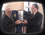Bob Minton presents the 2001 Leipzig Human Rights Award to Dr. Norbert Blum.