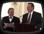 Ursula Caberta and Reverend Thomas Gandow present the First Alternative Charlemagne Award to Bob Minton.