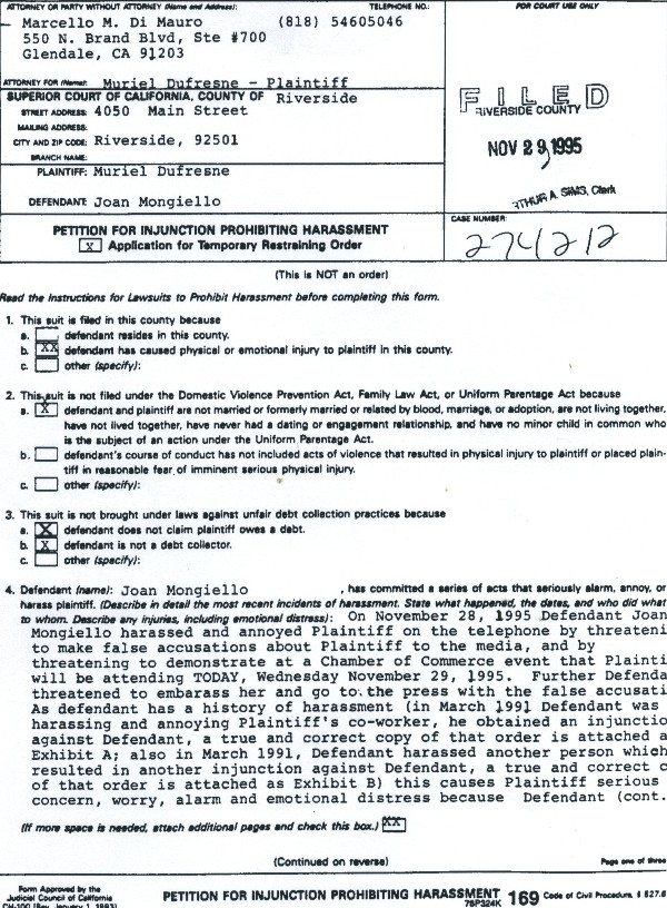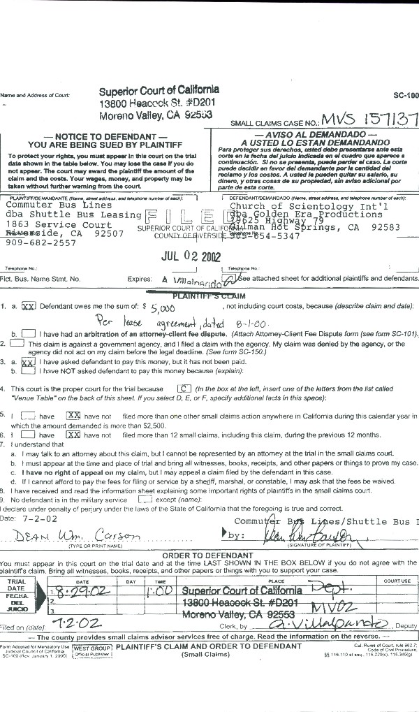 ![]() Other Scientology-related court case documents Allard v CSC, appeal ruling for Allard, 5/18/76 Tonja Burden v CSC order to answer, 7/14/81 complaint, 4/29/82 California v Golden Era Canada v Church of Scientology of Toronto Church of Scientology v US Church of Scientology v Cult Awareness Network CSC v Flynn, dismissal, 6/27/85 Church of Scientology Flag v Bob Minton and Lisa McPherson Trust Church of Scientology International v Steve Fishman motion to strike Youngs' testimony Church of Scientology New York v City of New York, 5/13/85 Church of Scientology of California v Gerry Armstrong memorandum, 6/84 proceedings, 8/2/84 Church of Scientology of California v Cazares,3/19/79 Church of Scientology of California v Nan McLean Church of Scientology of Toronto v Casey Hill Church of Scientology v Arnie Lerma depostion of Jeff Jacobsen CIT Group v Golden Era John Clark v LRH, complaint, undated Commuter Bus Lines v. Golden Era Paulette Cooper v CSC, alternate service LRH, 1/27/82 Corydon v CSI deposition of David Miscavige, 7/19/90 Bob Neilson et al v CAN, discrimination, 12/15/92 Don Larson Development v Church of Scientology of Alberta Dufresne v mongiello version 2 FAIR v Church of Scientology text version FLAG v Brennan Flag v Minton Florida v Minton Florida v Prince Freeman v CoS Roxanne Friend v CSI, complaint, 12/28/90 Garrity v CSC, 11/6/81 Nat Gauthier v. CSC small claims demand for refund, 10/28/83 Summary of German court cases up to 1996 Heller v Caberta motion to dismiss, undated order to dismiss, 5/9/02 Hospitality Construction v Golden Era Howd v Minton Hubbard Dianetics Foundation bankruptcy, 12/16/52 Sara Hubbard v L. Ron Hubbard divorce, 4/23/51 Illinois v Bunker JK Properties v Golden Era Nan McLean v CSC, complaint, 8/12/81 David Minkoff Administrative Complaint, 12/16/99 Minton v Alexander injunction, 11/26/02 motion for contempt, 12/17/02 Appeal ordering arbitration, 6/13/03 Ontario v Church of Scientology Toronto Jane Peterson v CSC, complaint, 11/9/81 Rancho Ready v. Golden Era RTC v Keith Henson, attorneys fees, 9/12/01 RTC v Lerma, Jacobsen deposition Fair use allowed, 8/30/95 judgement for RTC, 10/4/96 RTC v Robin Scott complaint, 1/31/85 LRH dropped from case, 8/12/86 Appeal Ruling 3/10/89 Richard Aznaran deposition, 11/9/89 Richard Aznaran deposition, 11/10/89 Robin Scott judgement memorandum on decision, 1/20/93 RTC v Scott, appeal ruling, 4/11/96 RTC v Grady Ward Earl Cooley declaration re: Minton payments, 11/18/99 judgement, 9/11/98 opinion on execution, 4/19/02 2 orders, 9/15/98 RTC v Wollersheim RTC v Yanny appeal, 1/11/94 Martin Samuels v Hubbard, 11/23/83 Schomer v LRH complaint, 10/25/84 Stamps v Narconon Stansfield et al v Starkey et al complaint, 12/29/86 appeal ruling, 5/9/90 Tichbourne v Church of Scientology of California US v E-meter, ruling, 7/30/71 US v Kember and Mary Sue Hubbard, "Snow White" US v Reed Slatkin, plea agreement, 2002 Lavenda Van Schaick v CSC, memorandum, 3/26/82 Vogt v Peak Performance, "Scientology/Civil Rights", 9/22/04 Wakefield v Church of Scientology of California order, 1986 settlement agreement, 8/13/86 violation of court order, 8/12/91 request for contempt decree, 2/11/93 Walnut Investment v Golden Era Young v Church of Scientology, process server, 1991 Zegel v CSC, complaint, 8/2/84 cross complaint, 6/19/87 Judge Ideman recuses himself, 10/17/94 More legal documents found here Others I do not have documentation for: LOS ANGELES COUNTY, CALIFORNIA [note: all the below come up from a search of a Scientology related corporation name, but sometimes the computer does not show such a corporation in the printout or on screen, indicating to me multiple defendants] Case # Date Plaintiff BC 063069 8/28/92 Academy Mechanical Inc. vs. Joseph Inc Guy, CSI BC 066256 10/13/92 Royal Plywood vs. Building Management Services 92K00529 1/6/92 Todd Pipe & Supply Inc., Sepulveda vs. Van Pelt, Tim (1/30/92 dismissed)(a Tim Van Pelt is listed in Impact issue 33, 1990 as a Scientologist and plumbing contractor) 92K29239 6/23/92 Metro Concrete Pumping Inc. v. Kerr, Charles (dismissed 1/27/93) 92K29241 6/23/92 Advantage Concrete Pumping vs. Kerr, Charles 92K35330 7/31/92 Acme Rent Inc. vs. Ackerman, Dale (dismissed 8/18/92) 92K40056 8/27/92 Atwood Sales, Inc. vs. Sheely, Everett (dismissed 1/27/93) 92K42130 9/15/92 Tobi Transport Inc. vs. Porrazzo, William Michael (dismissed 10-13-92) 92K45331 9/30/92 Tobi Transport Inc. vs. Sipro (dismissed 12/10/92) 92K48126 10/21/92 California Portland Cement Co. vs. BMS (dismissed 12/3/92) 92K55127 12/10/92 Southdown Inc. vs. Aero-crete Lightweight Concrete (dismissed 9/22/93) 93K24481 8/27/93 Armstrong Garden Centers Inc. vs. BMS (dismissed 12/16/93) 98K04207 3/4/98 Tokai Financial Services Inc. vs. CSI (breach of lease agreement on a copier. Contract signed by Catherine Gwynne for CSI) RIVERSIDE COUNTY, CALIFORNIA Case # Date Plaintiff R00208646 12/29/90 Western Sales & Rentals vs. CoS Scott Machinery Co. KRG Inc. Inland Tractor Scott Rentals Inc. Pacific Machinery R00209359 10/9/91 Doris Taylor Jett Co. vs. CoS R00205649 6/14/90 RJ Noble Co. R00208708 12/3/90 Pro-Cast Products Inc. vs. CoS R00209963 2/14/91 Kirby Gardens vs. CoS (Kirby Gardens is an apartment complex in Hemet used by Sea Org) R00239891 ? Payne Air Conditioning vs. CoS (dismissed 3/25/94) R00287270 ? BHP Steel Building Products vs. CoS (dismissed 1/6/98) 217237 ? Western Landscape Construction vs. CoS (dismissed 10/14/92) 288551 ? Brown-Strauss Steel vs. CoS (dismissed 5/27/97) 285126 ? Rental Equipment Inc. vs. CoS (dismissed 2/6/98) 285942 9/9/96 Verco Manufacturing Co. vs. CoS (dismissed 12/29/97) 208646 ? KRG Equipment Rentals vs. Golden Era Productions, BMS (judgment abstract 5/8/91) 961602 ? Brodhead Steel Products vs. BMS (dismissed 6/27/97) 971316 ? Nelson Equipment vs. BMS (dismissed 1/12/98) RIC 352255 Rancho Ready Mix, Inc. vs. Taseco Corportation, Johanna V. Beizer, CSI, Golden Era Productions - Breach of Contract (filed 12